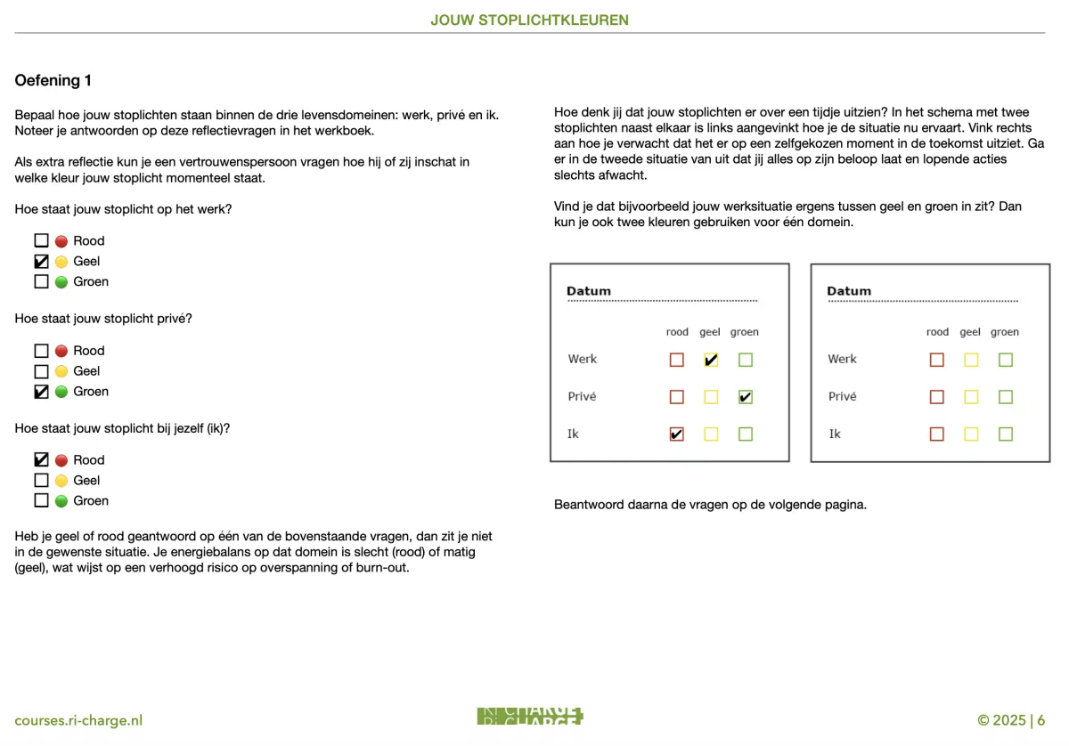 De Personal Battery-tool is een digitale toepassing gebaseerd op het Stoplicht Systeem die je bijvoorbeeld direct na de e-learning kan gebruiken om inzicht te krijgen in je energiehuishouding.